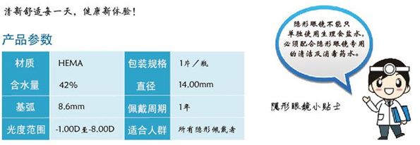 ★模压和车削结合的生产技术,镜片中心定位佳;材料好,透氧性能优异★三明治式制造工艺,色彩不接触眼球,安心舒适;添加锁色因子,使颜色外围形成一道透氧保护层,锁色但不锁氧★多种个性化色彩,潮流时尚必备单品。