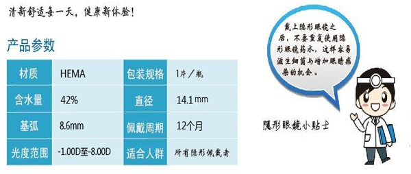 ★模压和车削结合的生产技术,镜片中心定位佳;进口材料,透氧性能优★三明治式制造工艺,色彩不接触眼球,安心舒适;添加锁色因子,使颜色外围形成一道透氧保护层,锁色但不锁氧